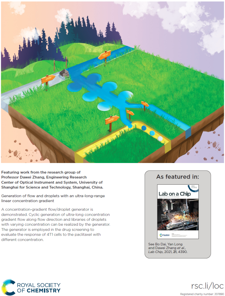 永利集团304am官方入口未来光学国际实验室庄松林院士、张大伟教授带领的超精密光学制造团队与加拿大曼尼托巴大学Francis Lin教授、复旦大学付永锋副教授、中国科学院深圳先进技术研究院巫建东副研究员、长海医院郭世伟教授合作,创新地提出了“超长线性浓度梯度生成的微流控技术”。论文作为封面论文在国际一流期刊《芯片实验室(Lab on a chip)》发表。12月5日,RSC英国皇家化学会官方微信号重点推介了这项成果。永利集团304am官方入口戴博教授、硕士研究生龙严同学和中国科学院深圳先进技术研究院巫建东副研究员为第一作者,张大伟教授、加拿大曼尼托巴大学Francis Lin教授和复旦大学付永锋副教授为通讯作者。