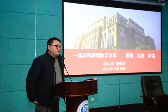 丁晓东强调,从事教育教学工作是高校师资队伍的天职和第一要务,新时代呼唤优秀的育人队伍。他重点阐述了“本科人才培养究竟需要什么样的教师”“如何建设优秀的教师队伍”两个问题。他指出,当前呆板僵化的课堂教学呼唤教师的新风新意,学生综合能力不足难以适应社会需求的现状呼唤教学方式方法的改变,学生奉献、奋斗精神的培养呼唤身体力行、全身心献身教育事业的教师,培养德智体美劳全面发展的社会主义建设者和接班人呼唤教师综合能力和素养的提升。教师队伍首要立足于人才培养,核心立足于本科教育,根本立足于育人意识和能力。教师队伍建设要以德为先,在人才引进时,不仅要看其是否接受过良好的训练、具备良好的经历,更要看其是否有献身教育事业的意愿,是否具备从事教育教学工作的条件和能力;在人才培养中,要加强对如何提高教师教育教学、学科建设、担纲导师三大能力的研究,发挥传帮带的作用,引导青年教师投身教育教学改革,围绕传统优势学科,培育和打造一批优秀的教材、专业、课程、教师等本科教育精品。