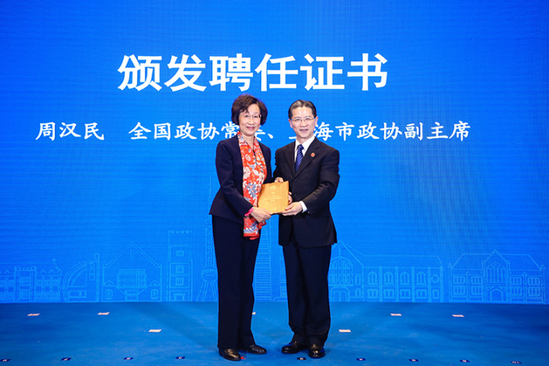 周汉民为专家咨询委员会成员赵启正颁发聘书