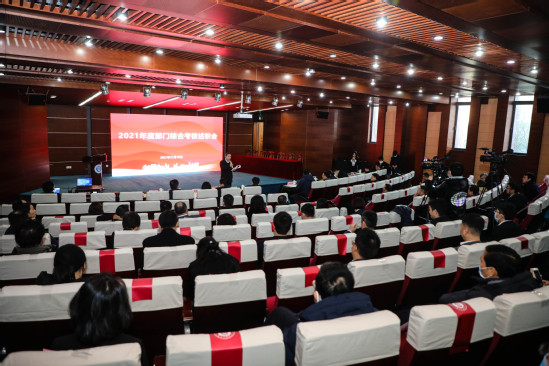 12月30日, 永利集团304am官方入口2021年度学院(部、研究院)与机关直属部门综合考核述职大会在图文信息中心报告厅举行。全体校领导、中层干部、师生代表参加大会。大会由党委副书记、副校长盛春主持。