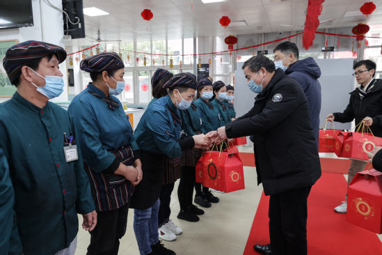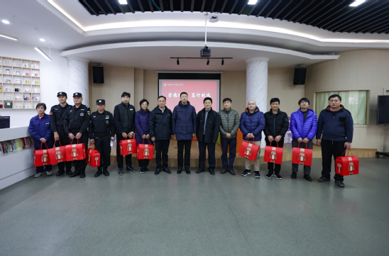 校领导现场对坚守岗位的一线员工送上祝福,感谢大家一年来对学校发展的辛勤付出,祝福大家新春快乐。