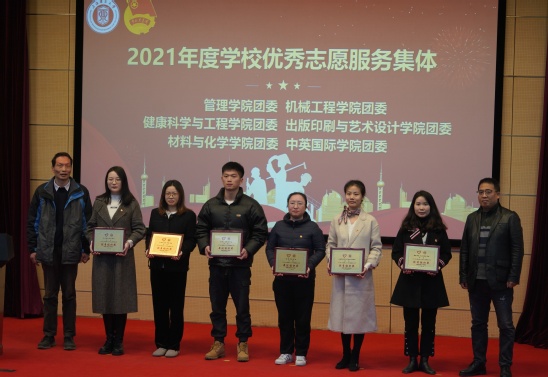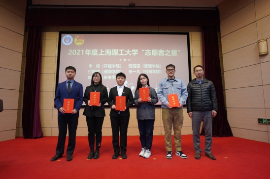 会上,校团委书记刘威从志愿服务工作概况、专项志愿服务活动组织、志愿服务品牌创建等方面汇报了永利官网2021年志愿服务工作总体情况。研工部部长彭宗祥宣读了2021年度学校个人和集体分别荣获上海市优秀志愿者、第四届进博会志愿服务先进集体的获奖喜报。学工部副部长孟志雷、保卫部副部长蒋纯国、后勤处副处长缪渝斌分别为2021年度学校优秀志愿服务集体和“志愿者之星”颁奖。组织部副部长谢锡浩、宣传部副部长孙立共同为志愿服务队授旗。学校青年志愿者协会张一凡同学作为学生代表发言,她号召学校全体青年携手并肩,为建设和谐美丽校园和争创全国文明校园贡献自己的青春力量。