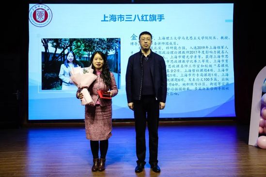 孙跃东为上海市教育系统“三八红旗手”韩戈玲颁奖