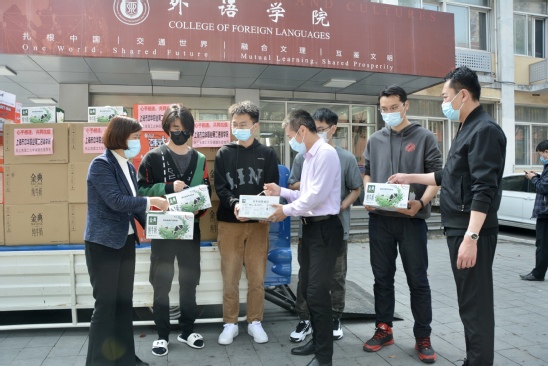 得知这一消息,全国“两会”闭幕后从北京返沪的全国政协常委、民建中央副主席、上海市政协副主席、民建上海市委主委、上海市中华职业教育社主任、上海公共外交研究院理事会理事长周汉民非常牵挂,在他的亲自关心下,民建市委会员企业、上海市中华职业教育社社属学校群策群力、筹措物资支持永利官网。3月15日,外语学院院长、上海公共外交研究院常务副院长刘芹相继接到上述企业和学校负责人电话,接洽物资采购或加班制作事宜。校友工作联络处也主动与后勤管理处和外语学院对接,商议捐赠物资发放事宜。