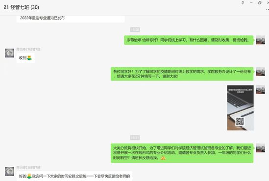 管理学院束义明老师在学生群里开展线上教学问卷调查