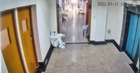 同样,在同济大学,一张志愿者教师靠在楼道里歇一歇的监控照片令人破防。在给封闭在宿舍楼的学生送饭、倒完垃圾后,一位教师对旁边的志愿者说:“你先休息,我来站岗,放心。”他们连早饭中饭都没来得及吃,略显佝偻的身躯令人动容。