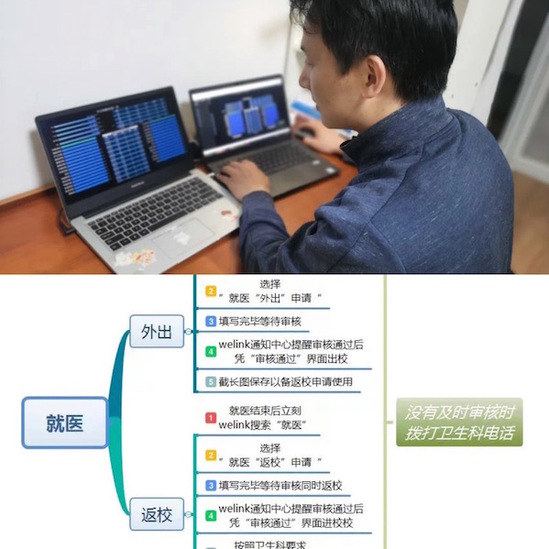 分管226名学生日常管理工作的辅导员周强老师赞不绝口,他的两位学生分别在线上进行了校外就医和出校申请,十几分钟便能完成整个审批环节,同步收到可进出校通知提醒。