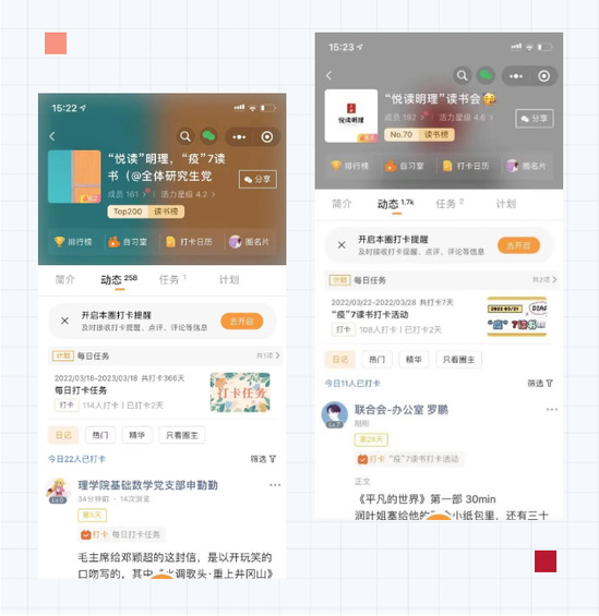 研究生党支部书记联合会与研团委一起,通过党员带团员、团员带群众进而带动全体研究生,利用“小打卡”线上程序进行为期7天的读书打卡活动,鼓励同学们养成良好学习习惯,汇聚精神力量。