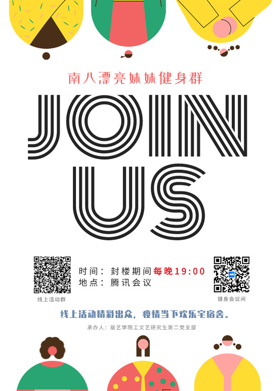 版艺学院工文艺研究生第二党支部在八宿舍封控期间成立了“南八健身群”,在线上带领大家一起做体育运动,以这样的方式让同学们保持良好的情绪和健康的身体;