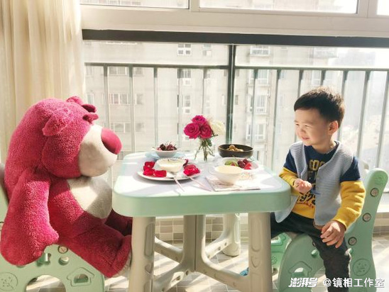 “桌椅,餐具都摆好,蛋糕从盒子里拿出来摆到盘子里,对面坐着他最喜欢的草莓熊。过几天,再为他准备一场野餐,野餐垫铺好,篮子里面放满吃的,也算是有点仪式感了。”金老师要求的仪式感,是让孩子了解“野餐”的概念,知道野餐是要有布,有花的。在居家期间拥有积极向上的态度,寻找生活的乐趣,在未来的生活坎坷里也应如是。