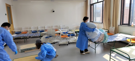 19日晚,接到支援复兴路校区的通知后,学校后勤餐饮中心立马组队,11位同志简单收拾两三件衣服收拾就出发了。他们一到复兴路餐厅就开始进行打扫、清洁和环境消杀,做好21日中午正式恢复供餐的各项准备工作,以缓解复兴路校区的餐饮供应压力。他们在人手紧张、环境制约的条件下严格执行与主校区相同的餐厅管理标准,以确保师生用餐安全。而为了避免交叉感染,这些辛苦支援的同志们晚上就在餐厅大厅席地而卧。餐饮中心负责人方勇表示:“我们坚守在这里,就是为了让复兴路校区的师生们吃得放心、吃得满意。”
