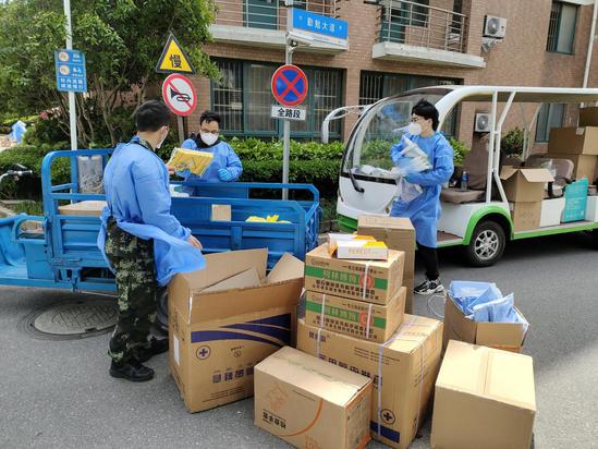 “下班”回办公室的路上,听说临时搭建核酸检测台的地方堆满垃圾,科研院党支部金卡老师又急忙冒雨赶到现场,拿着扫帚清理起来;由于楼栋里学生课业繁多,招募到的志愿者较少,环建学院辅导员王炳佳连轴转守护着楼里862名学生,导致胆囊炎旧疾复发;为了及时运送各类物资,材化学院辅导员林志威学着开起了电动三轮和电动巡逻车,兼职校园“快递小哥”;汉堡、馄饨、水饺、炒饭、炒面等主食轮番登场,各食堂在条件和能力许可范围内,想方设法精细化改进学生伙食……