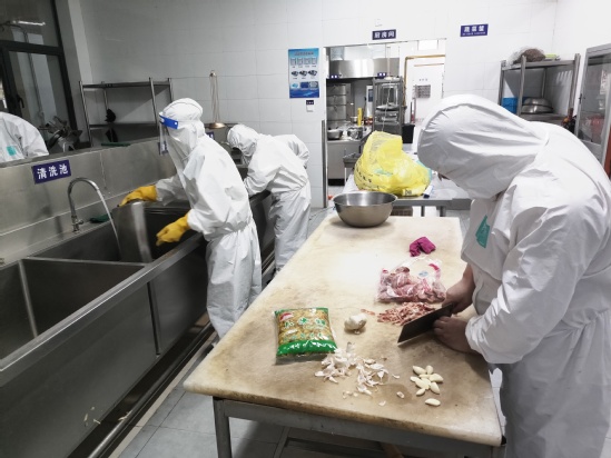 火速支援复兴路校区的后勤餐饮中心“伙头军”在餐厅后厨全面开动