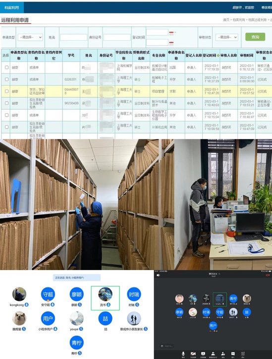 校园封控期间,师生校友的档案利用需求如何满足?“线上办理一键通,线下只跑一次腿。”特殊时期,面对各种档案利用需求,档案馆除了做好日常电话接待、邮件回复工作,还积极落实档案利用“云帮办”:校外人员只需登录“永利集团304am官方入口档案远程利用系统”提出需求,只要满足档案利用法规,即可开具相关证明;校内人员查档时,在严格遵守学校疫情防控规定的前提下,可前往窗口进行业务办理。