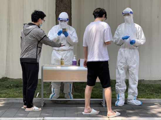 南四宿舍临时党支部成员担任核酸扫码志愿者