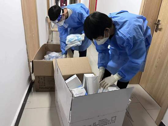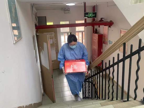 协助“大白”完成核酸检测工作、搬运餐食、对物资进行消杀和分发、协助辅导员统计每日抗原情况……这些都是复兴路校区第四宿舍党员志愿者陆诗雯最近的日常。其中,送餐和送物资是个“体力活”,全靠陆诗雯和其他志愿者徒手搬运,刚开始她甚至扭伤过腰,慢慢就摸索出了“窍门”,将水果和饮料等进行二次分装,上下楼多跑几趟。