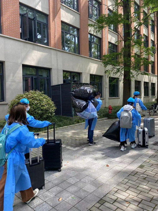 在“两点一线”护送校内转运学生的过程中,最难熬的不是面临的感染风险和身体的疲劳,而是面对紧张焦虑、不知所措的学生所经受的心理考验。未知的隔离条件和对病毒的恐惧经常让一些学生陷入崩溃。一次次的物资输送、一句句温暖的关切,他们让学生卸下不安和防备,平静地面对隔离生活。“接到转运通知后,我们必须立刻行动,尽最大可能减少病毒传播的时间和空间,还要确保整个过程严格遵循转运工作规范,做好学生心理疏导工作,建立健康台账,加强人文关怀,让转运工作既严格规范又不失温度。”马克思主义学院党委书记、南区转运组负责人李杰说道。