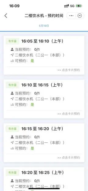 陆天成还开发出具备宿舍楼内饮水机预约功能的小程序