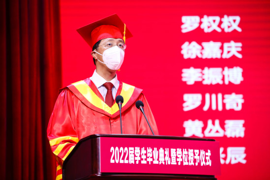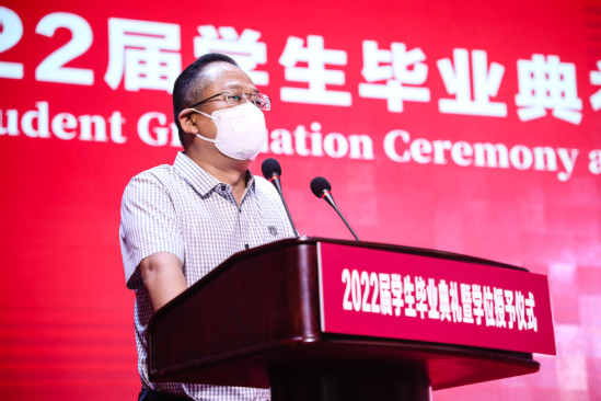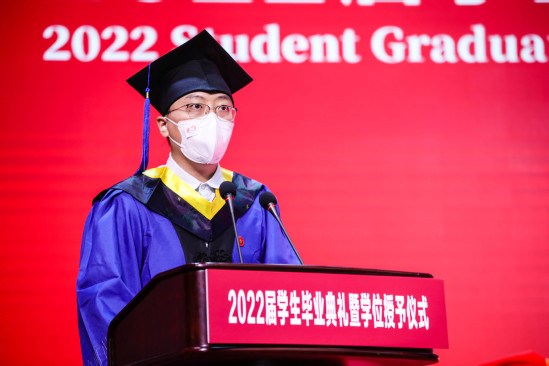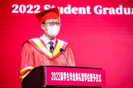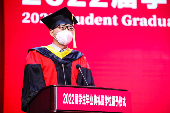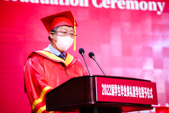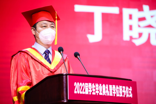 丁晓东做了题为《在开放式结局中自定义多彩未来》的致辞。在毕业生们即将开启“未完待续”的下一集人生之际,丁校长送给他们自定义未来的几个“必选项”:一是感恩,未来无论处于常态还是非常态,希望毕业生们抱有一颗感恩之心,时时以大局为重,多为别人着想、为集体着想,多一些理解,多一些宽容,让所有善良都得到温暖的回报;二是理性,希望毕业生们今后无论风平浪静或是险象环生,都始终头顶理性的光辉,善于全面、辩证、发展地看问题,保持独立的主张、强大的定力、恰当的分寸,不仅成为自己的主人,更成为给予他人正能量的“领袖”;三是信心,置身于“后奥密克戎时代”,不仅要认清现实,更须重拾信心,希望毕业生们攻破重重障碍去逐梦圆梦,在危中寻机,开辟建功立业的新蓝海。