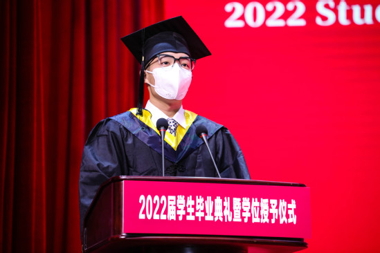 校园的每个角落,都留下了上理学子奋斗进取的足迹,毕业生代表与大家分享关于他们的成长故事和对青春最美好的回忆。健康科学与工程学院硕士毕业生平泽禹在发言中说,虽然疫情让毕业临行略显匆忙,但作为上理学子,已将“信义勤爱、思学志远”的校训融入每个人的精神内核,在母校不懈追求建设特色显著的一流理工科大学的同时,同样会为自己的梦想不懈努力。将赴上海交通大学继续深造的能源与动力工程学院本科毕业生华菁阳回顾了自己4年在上理的成长,慢慢懂得校训“信义勤爱”中的“爱”,即是自信自爱、关怀互爱的小爱,又是奉献之爱、担当之爱的大爱,更是投身社会、立足时代的民族之爱、家国之爱。环境与建筑学院饶平平教授作为教师代表发言,他希望同学们能在今后的人生中耐得住寂寞、学会在逆境中成长,敢于担当、即便在暗处也要发光发热,甘于奉献、让青春绽放在祖国需要的任何地方。最后,93届制冷系校友、上海励致设备工程有限公司董事长顾巍分享了他的人生经历与感悟,鼓励毕业生们在今年上海面临最大疫情挑战,各种经济数据不如预期的情况下,先就业再择业,通过自己不懈的努力与坚持,定会收获美好的未来。