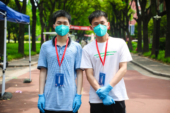毕业典礼当天,还有一些身在学校、原本可以坐在大礼堂参加线下毕业典礼的同学,然而他们却主动报名参与到当天的志愿服务岗位上,在各个校门口为安置行李的毕业生们进行入校检查、消毒等工作。