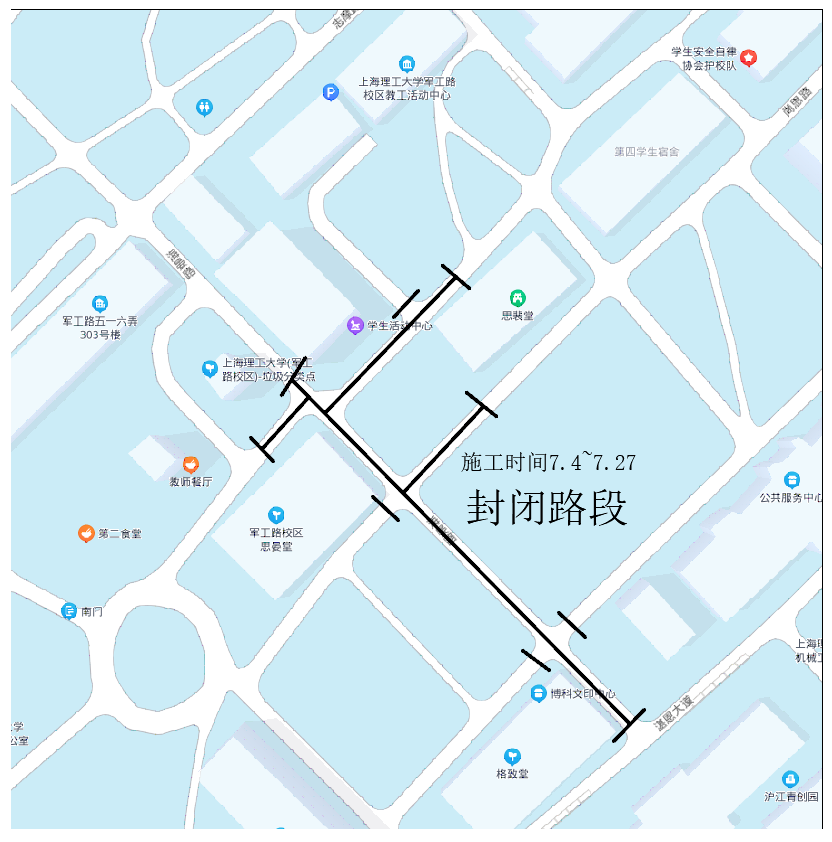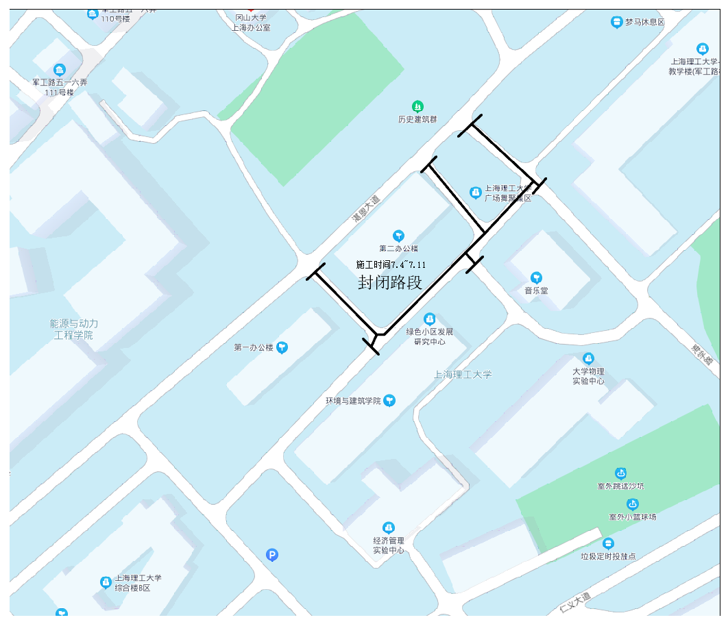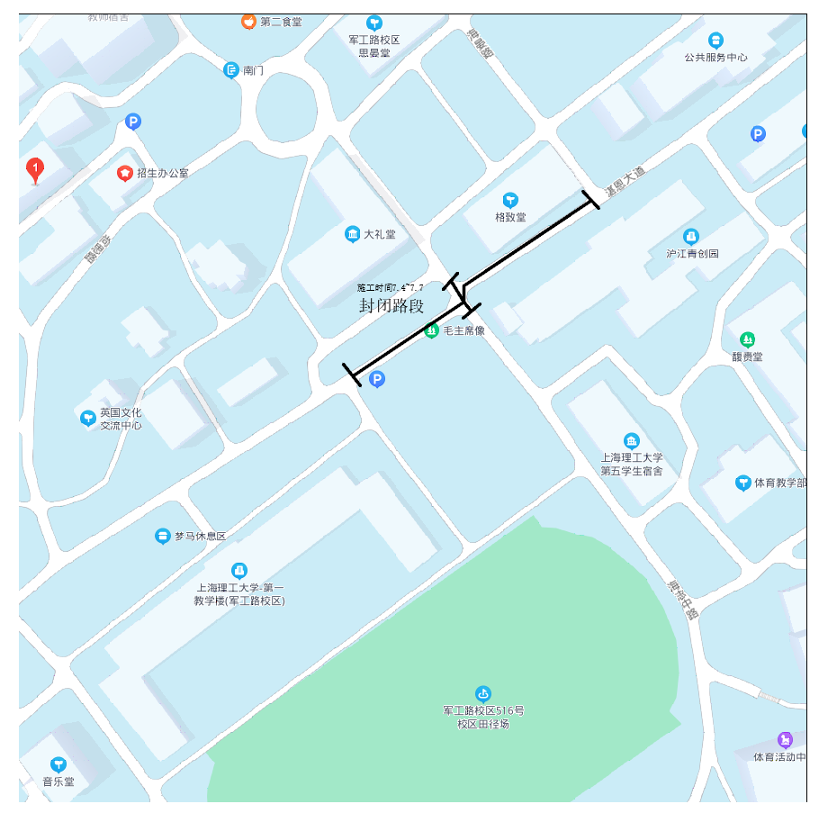 根据学校地下管网改造工程施工需要,2022年7月4日至8月20日军工路516号校区内部分区段进行封闭施工。具体封闭施工区段如下: