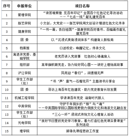 用好用活学校丰厚的红色文化资源,2021年刘湛恩烈士红色文化主题馆开馆,为爱国主义教育提供了生动教材。档案馆通过对沪江大学时期、国立高机时期、上海机械学院时期的老领导、老教授、老校友以及家属进行“抢救性”口述访谈,拓展校本文化资源,厚重上理精神内涵;组织部通过开展“讲好统战故事”等系列主题活动,组织无党派人士、党外知识分子参与全员育人,高举旗帜跟党走,协力绘好同心圆;版艺学院着眼“小文创”,创新“大党史”,挖掘党史、地方史和校史,聚焦“青春心向党”红色主题,联动两个课堂,以文创作品设计赋能红色文化传承;沪江学院音乐系创作的红色革命文化原创音乐剧《春归》项目,荣获2021年全国第六届大学生艺术展演一等奖;中英国际学院以国际视野助力侗族文化和海派文化融合发展,守护千年侗乡的“根”与“魂”。