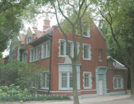 思福堂是砖木结构建筑,清水红砖墙,白色窗套,开窗方正,南立面有浮雕式圆拱,阳台装饰卷草纹柱子,三角形山墙外饰以名木框架。曾用作女教员宿舍。
