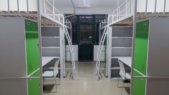 漆黑夜色里,一束束白色的灯光亮在上理校园的学生宿舍里,温暖且安静。但其实走近看,却并没有想象中那么诗意。上理学生宿舍修缮工程正在进行中,灯火处是另一番热火朝天的景象。因工程量大,时间紧,工人们白天,晚上两班倒,连轴转,争分夺秒赶工期,确保学生宿舍修缮按时交付。建设者们汗流浃背,后勤管理处金志伟老师在旁仔细盯着每一道工序或是搭把手。烈日下,夜幕中,人影被拉长、缩短、再拉长,每一个人都像上了发条,没有人喊一句苦和累。