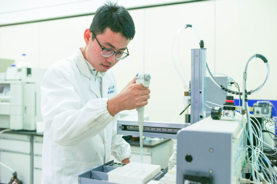刘伟在实验室进行实验