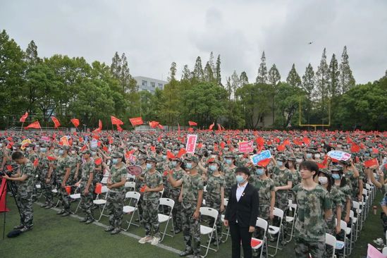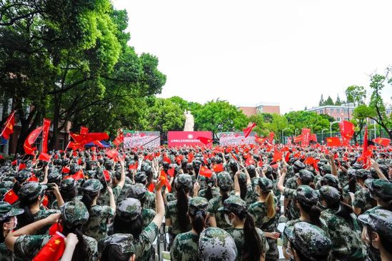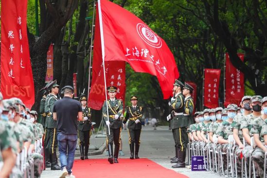 “五!四!三!二!一!”在新生们的倒计时呐喊中,2022年军训剪影短片《铁骨燃斗志 热血颂青春》拉开了开学典礼的序幕。目光坚毅,步履铿锵,口号嘹亮,英姿飒爽。短片再现了2022年新生军训的精彩瞬间,展现了新上理人奋发进取的精神面貌。“信义勤爱、思学志远,我们是新上理人!”新生们嘹亮的口号声回荡在开学典礼现场的每一个角落。三个会场的挥旗联动更是让新生们的热情与活力弥漫整个校园。