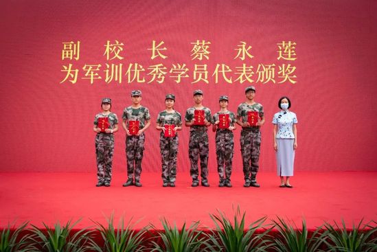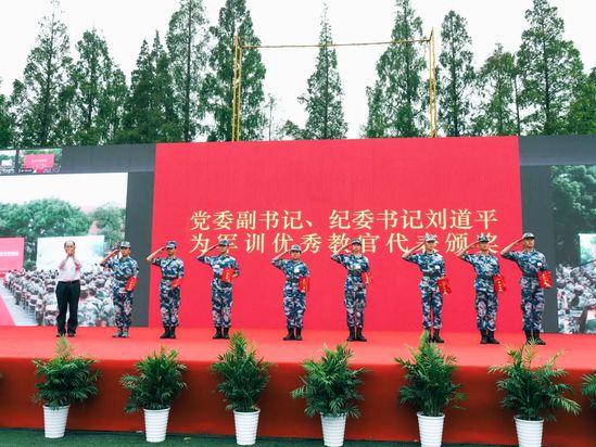 顾春华宣读了关于表彰军训优秀学员、优秀教官、优秀工作人员和优秀指导教师的决定。校领导刘道平、孙跃东、陈斌、蔡永莲、张道方、赵明、张华分别为受表彰人员代表颁奖。