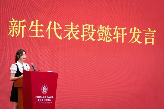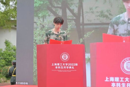 江欣颖、侯润宇、段懿轩作为新生代表,分别在三个校区发言。他们表示作为新时代的上理人会树立志向,勤学善思,锤炼品德,涵养情操,不断突破“小我”,成就真正的“大我”。时代将重任交于青年一代的肩膀上,他们将与大家共同接过先辈的旗帜,铭记“信义勤爱、思学志远”的校训,踔厉奋发,笃行不怠,通往更大的世界。