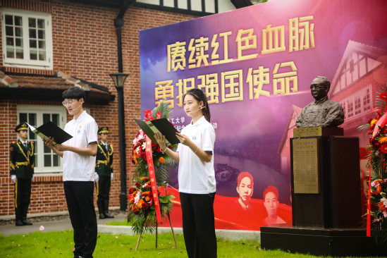 上午8点30分,刘湛恩烈士故居红色文化主题馆外,“赓续红色血脉勇担强国使命”主题活动举行。默哀仪式后,伴随着《献花曲》庄严深情的旋律,八位学生退伍老兵向15位革命烈士群像敬献花篮,校党委副书记孙跃东,党委副书记、副校长盛春缓步上前仔细整理花篮缎带。师生代表以《缅怀先烈 强国有我》抒发了上理师生传承百年红色基因、砥砺奋进担当制造强国使命的情怀。