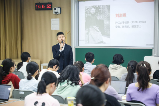 “刘湛恩担任上海抗日救亡联合会主席的巨大号召力和影响力,使他成为日本侵略者的眼中钉。除了费尽心机地企图游说刘湛恩担任伪‘维新政府’的教育部长,更是不停地恐吓和威胁,但他断然拒绝,被暴徒残忍暗杀……”这是上理工马克思主义学院思政课教师李莹开设的《社会主义发展史》的上课一幕,沪江大学(上理工前身)校长、爱国教育家刘湛恩烈士的抗日故事引发了同学们的震撼和共鸣。