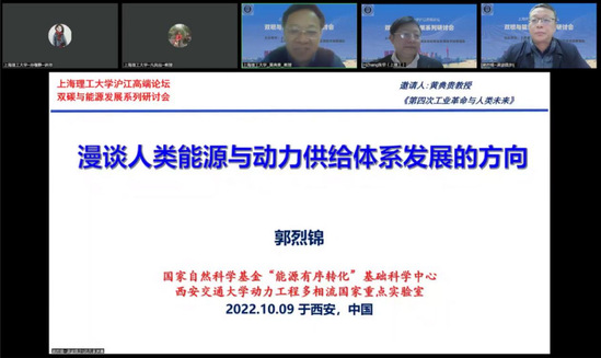 10月9日举行的研讨会的主题是“能源科技与动力供给体系”,中国中科院院士、世界科学院院士、工程热物理与能源利用学家、我国能源动力多相流及氢能学科主要带头人郭烈锦教授出席,并做题为“漫谈人类能源与动力供给体系发展的方向”的报告。他从人体能源动力供给体系与多相流科学技术的联系谈起,通过讨论能量与能源的内涵及其转化利用的本质,回顾了人类用能与传统能源动力供给体系的演变,阐述了我国能源强国战略的要义与碳中和的内核。最后从“能源有序转化”的科学理论出发,介绍了变革性的洁净低碳高效煤炭转化原理与创新技术的进展。
