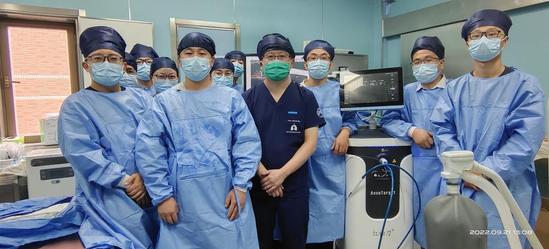 首例经支气管早期周围型肺癌冷冻消融术成功后,医生与研发人员合影