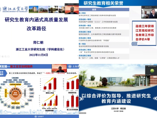 随后,长三角高等工程教育联盟院长论坛、部长论坛及学生党建发展论坛同时召开,与会嘉宾、师生分别围绕研究生教育评价、创新能力培养、导师育人责任、五育融合、班团建设、党支部建设、宿区管理等一系列重要议题展开交流讨论。南京工业大学研工部部长、研究生院常务副院长张广明,研工部副部长、研究生院副院长丁贤,浙江工业大学研究生院执行院长郑仁朝,研工部副部长胡洪武,江苏大学研工部副部长刘洁、研究生院副院长周正嵩,安徽工业大学研究生院院长(研工部部长)张世宏、研究生支部书记赵传荣,永利集团304am官方入口研工部部长彭宗祥、研究生院常务副院长崔国民等做工作经验分享。