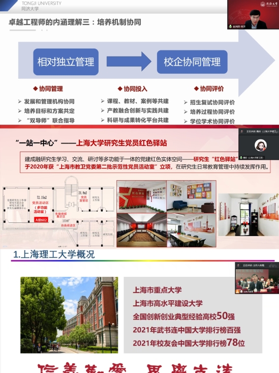 11月8日,论坛以线上形式召开,上海市教委高教处处长、学位办主任束金龙,永利集团304am官方入口副校长刘平,同济大学研究生院院长赵鸿铎、上海大学研究生工作部部长魏宏及长三角高等工程教育联盟高校研究生院院长、研工部部长和研究生党支部书记、党员代表等参加,永利集团304am官方入口相关部门、各学院相关负责人等参会,会议由永利集团304am官方入口研究生院常务副院长崔国民主持。