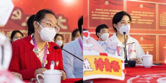 校团委副书记杨阳汇报了第五届进博会志愿者服务保障情况;随后来自管理学院2021级工商管理硕士研究生朱曼宇和版艺学院2019级本科生吴茜玥代表志愿者围绕习近平总书记在第五届进博会开幕式上的致辞,分享进博初心和青春宣言。