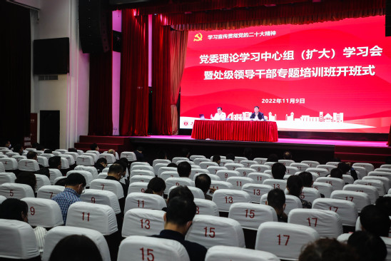 此次学习会也是学校处级干部学习贯彻党的二十大精神专题培训班开班式的首场报告。