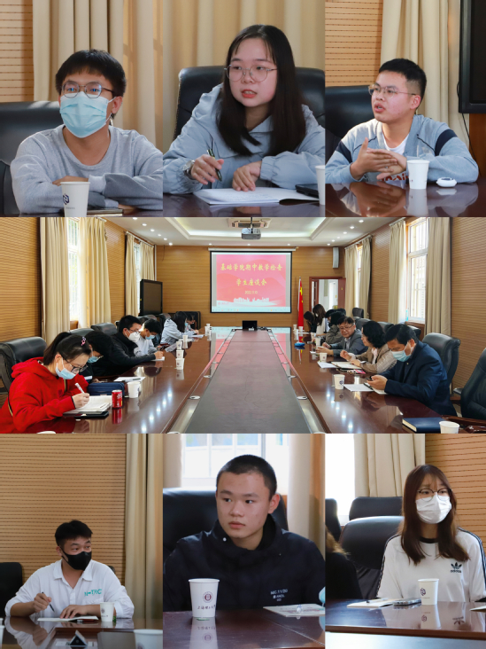“我常常思考什么样的课程是学生喜欢的?大学的教育更应该注重哪些?”部分未返校学生线上学习状态不太好。”“跨校区上课时间紧张。”11月10日,基础学院以期中教学检查为契机,在学院会议室分别召开教师座谈会和学生座谈会,在1100号校区任课的教师代表和学生代表以及相关部门参加座谈,就教学管理、配套设施、学生学风等方面听取意见和建议,学院领导班子成员和部分教师参加座谈。