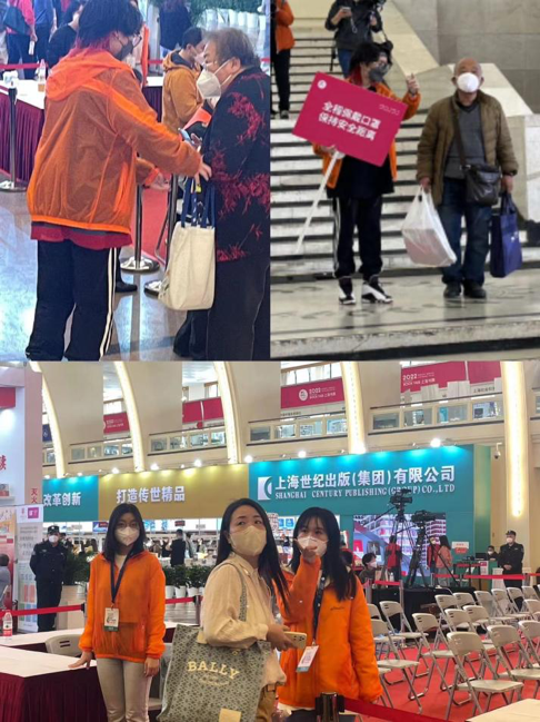 到岗上任时,志愿者们身穿橙色醒目外套,在各自岗位耐心为参展观众提供咨询服务,尽自己所能得帮助每一位有需要的人。志愿者们坚守岗位,争取为游客带来更棒的参展体验。许多前来参展的老人对防疫措施流程并不熟悉,志愿者努力为老人们排除各项尤其是智能机使用上的困扰,帮助他们能够更顺利地参观展览。