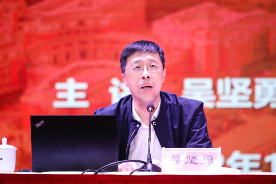 11月23日下午,党委书记吴坚勇为机关全体教职工作党的二十大精神专题辅导报告。报告会由党委副书记孙跃东主持。