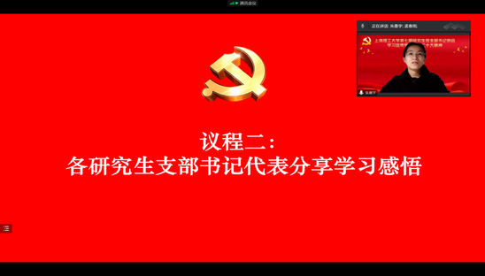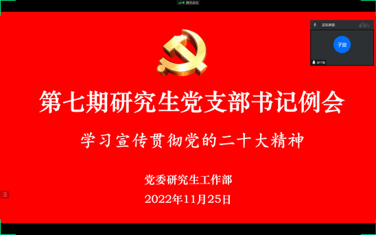 11月25日,学习宣传贯彻党的二十大精神——永利官网第七期研究生党支部书记例会暨第24期书记沙龙在线上开展。全体研究生党支部书记参加,会议由党支部书记联合会会长赵子旋主持。