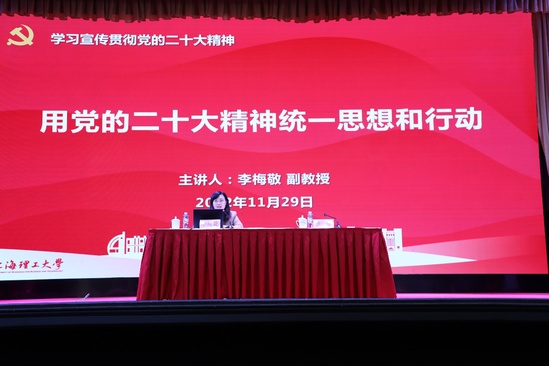 11月29日下午,学院在大礼堂举行了学习宣传贯彻党的二十大精神宣讲报告会,学院教职工、部分学生党员300余人参加。马克思主义学院李梅敬副教授做题为“用党的二十大精神统一思想和行动”专题报告。报告会由学院党委书记袁媛主持。李梅敬通过“为什么”“是什么”“有什么”“做什么”4个问题引入宣讲,从报告“四大板块”“三大成果”两方面带领大家深学细悟党的二十大精神,对“中国式现代化”的深刻内涵做了详细阐释。最后就如何践行党的二十大精神,从政治、理论和实践三个角度,结合高校实际,围绕科技强国、教育强国、人才强国做了讲解。