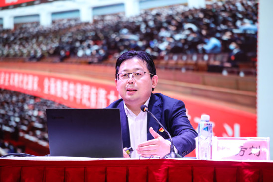 陈方刘以“新时代十年伟大变革及其里程碑意义”为题,他强调,过去五年是极不寻常、极不平凡的五年,他从对党和人民事业具有重大现实意义和深远历史意义的“三件大事”入手,重点解读了十年来我们经受住了来自政治、经济、意识形态、自然界等方面的风险挑战和考验,在习近平新时代中国特色社会主义思想指引下,党和国家事业取得的历史性成就、发生的历史性变革,推动我国迈上全面建设社会主义现代化国家新征程。