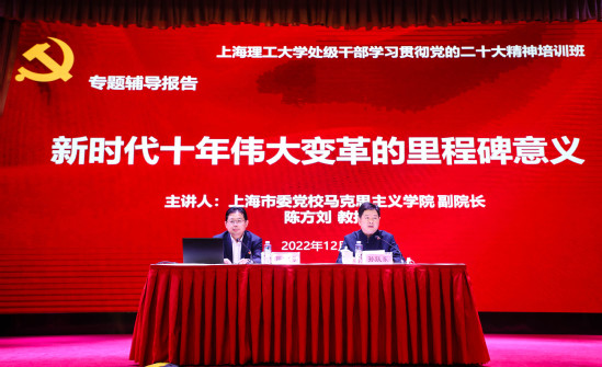12月1日,上海市学习贯彻党的二十大精神专家宣讲团成员、上海市委党校陈方刘教授应邀为永利官网处级干部学习贯彻党的二十大精神培训班作第六场专题辅导报告。学校全体处级干部、辅导员参加学习。报告会由学校党委副书记孙跃东主持。