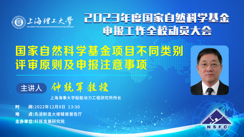 主题:国家自然科学基金项目申报讲座——国家自然科学基金项目不同类别评审原则及申报注意事项