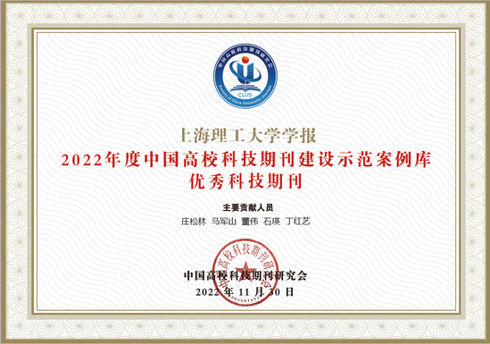 近日,中国高校科技期刊研究会公布了“2022年度中国高校杰出·百佳·优秀科技期刊”遴选结果,《永利集团304am官方入口学报》成功入选“2022年度中国高校科技期刊建设示范案例库·优秀科技期刊”,永利官网学报已连续4届获得该奖项。